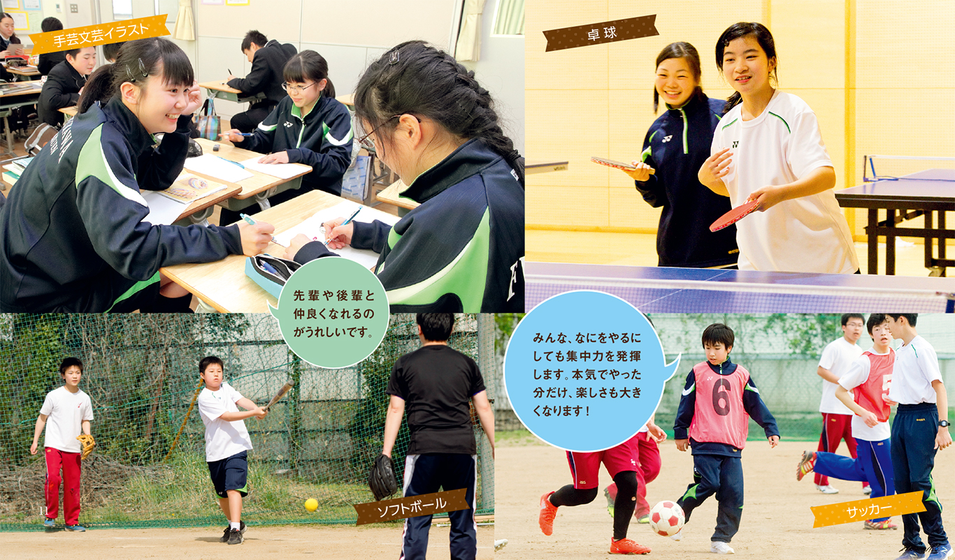 学年の枠を取り払い、運動系クラブと文化系クラブに分かれて活動しています。