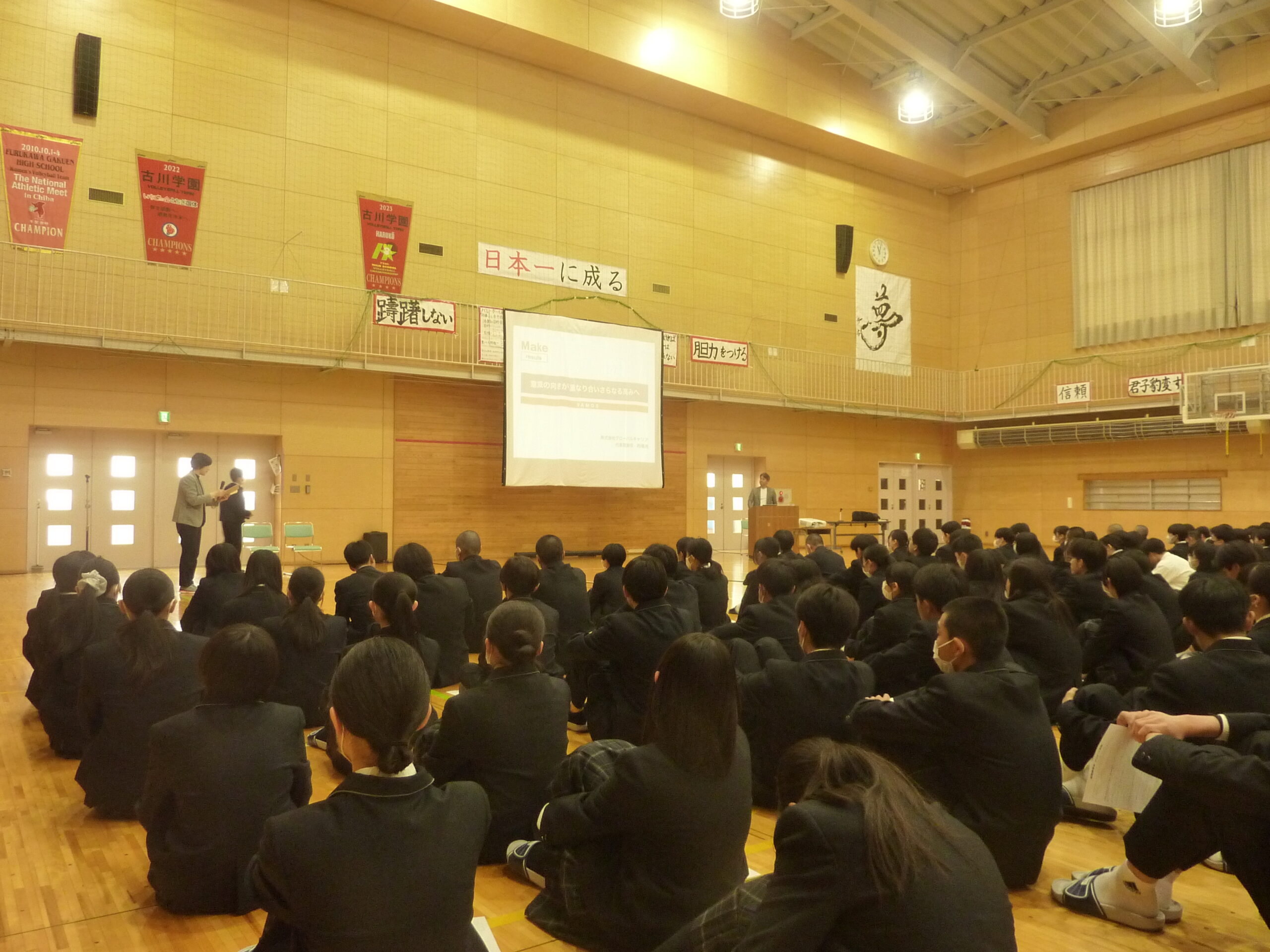 様々な問いや映像を交えながら話していただき、生徒たちは楽しみながらも多くのことを感じ取り、これからの高校生活について決意を新たにしていたようです。