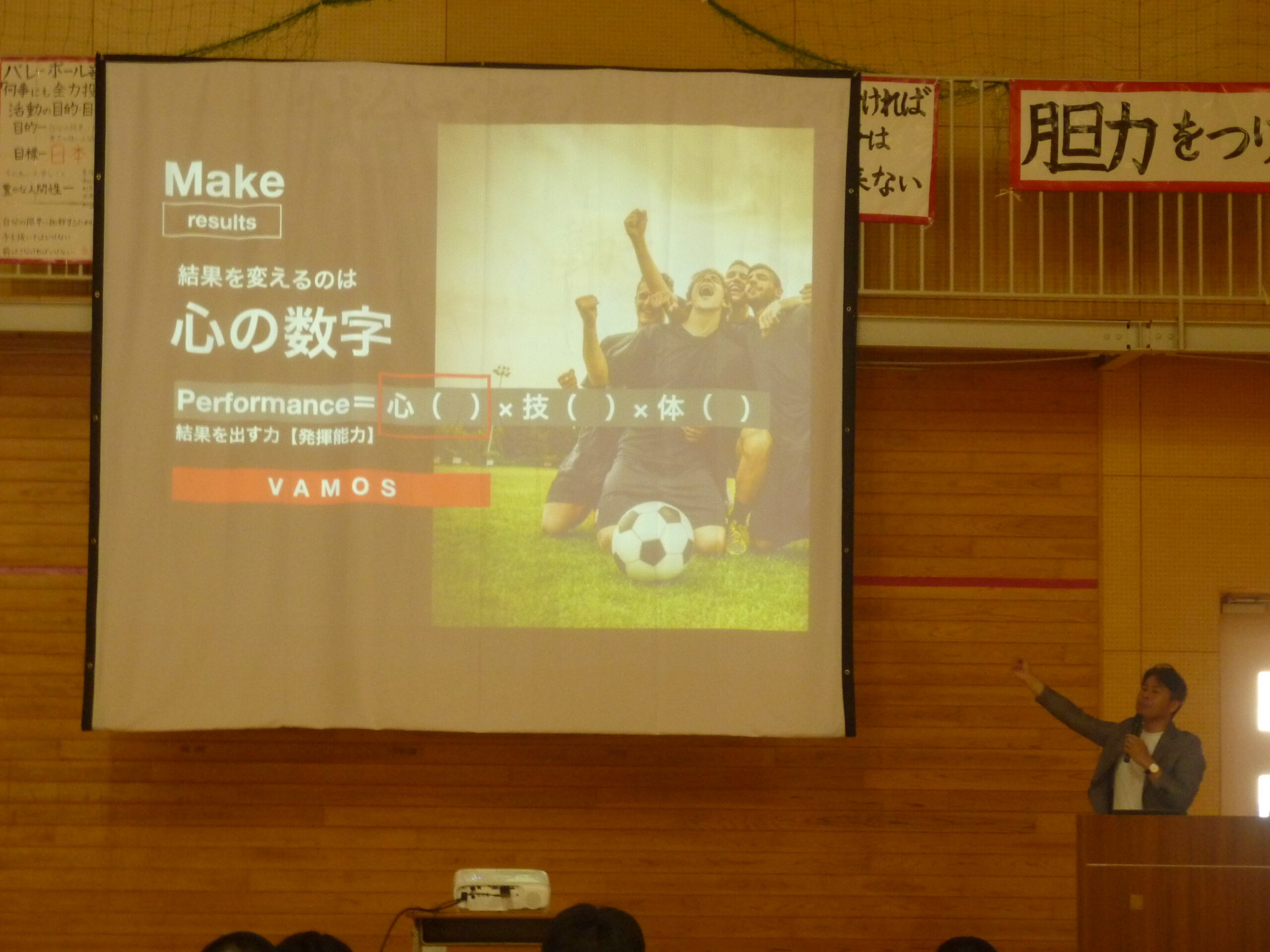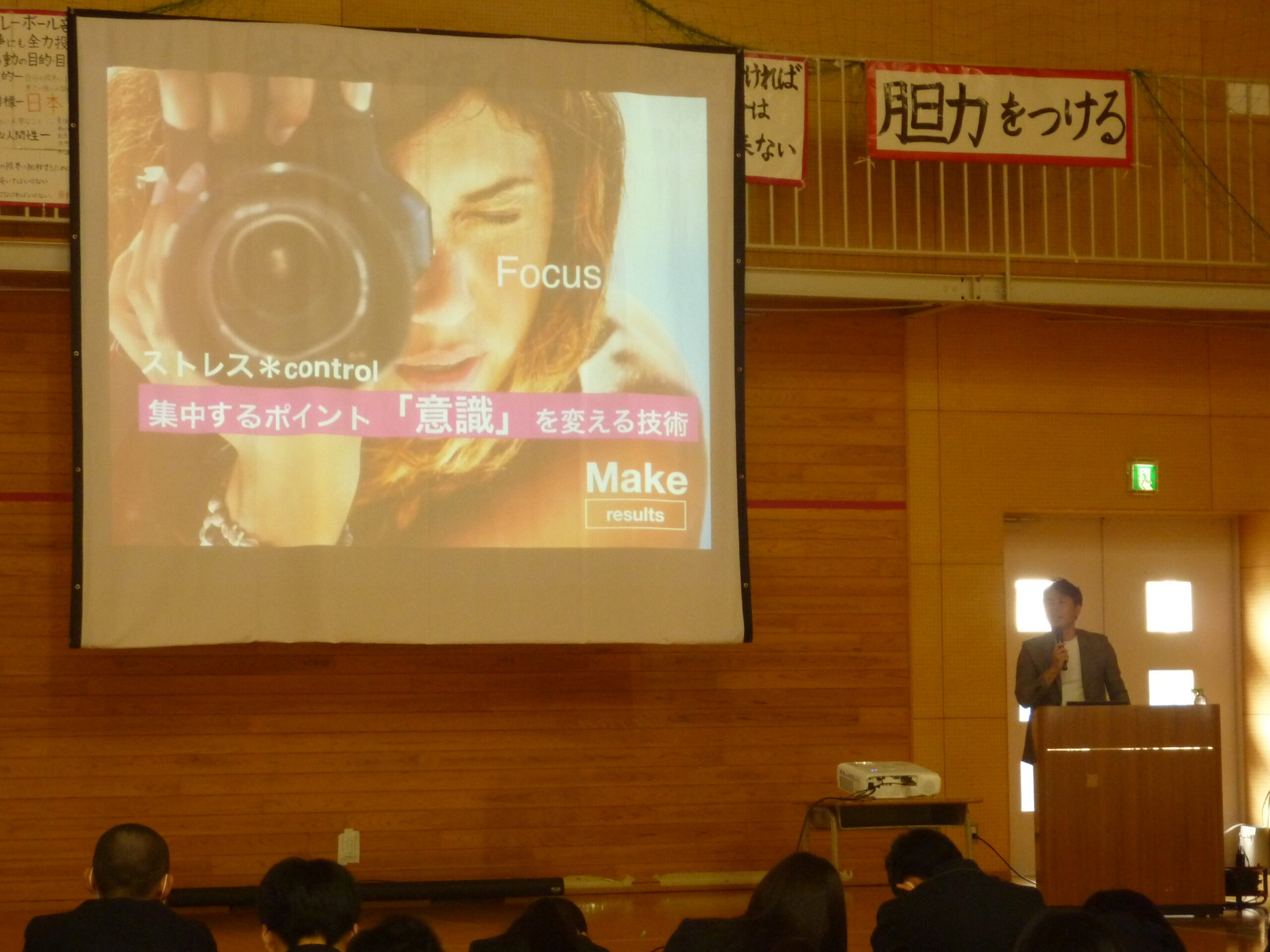 勉強や部活動など、生徒たちが日々の学校生活においてぶつかる様々な困難をどのように乗り越え、自分自身を高め、3年後の進路の実現につなげていくか、その方法について、的場亮先生((株)グローバルキャリア 代表取締役)から講話をいただきました。