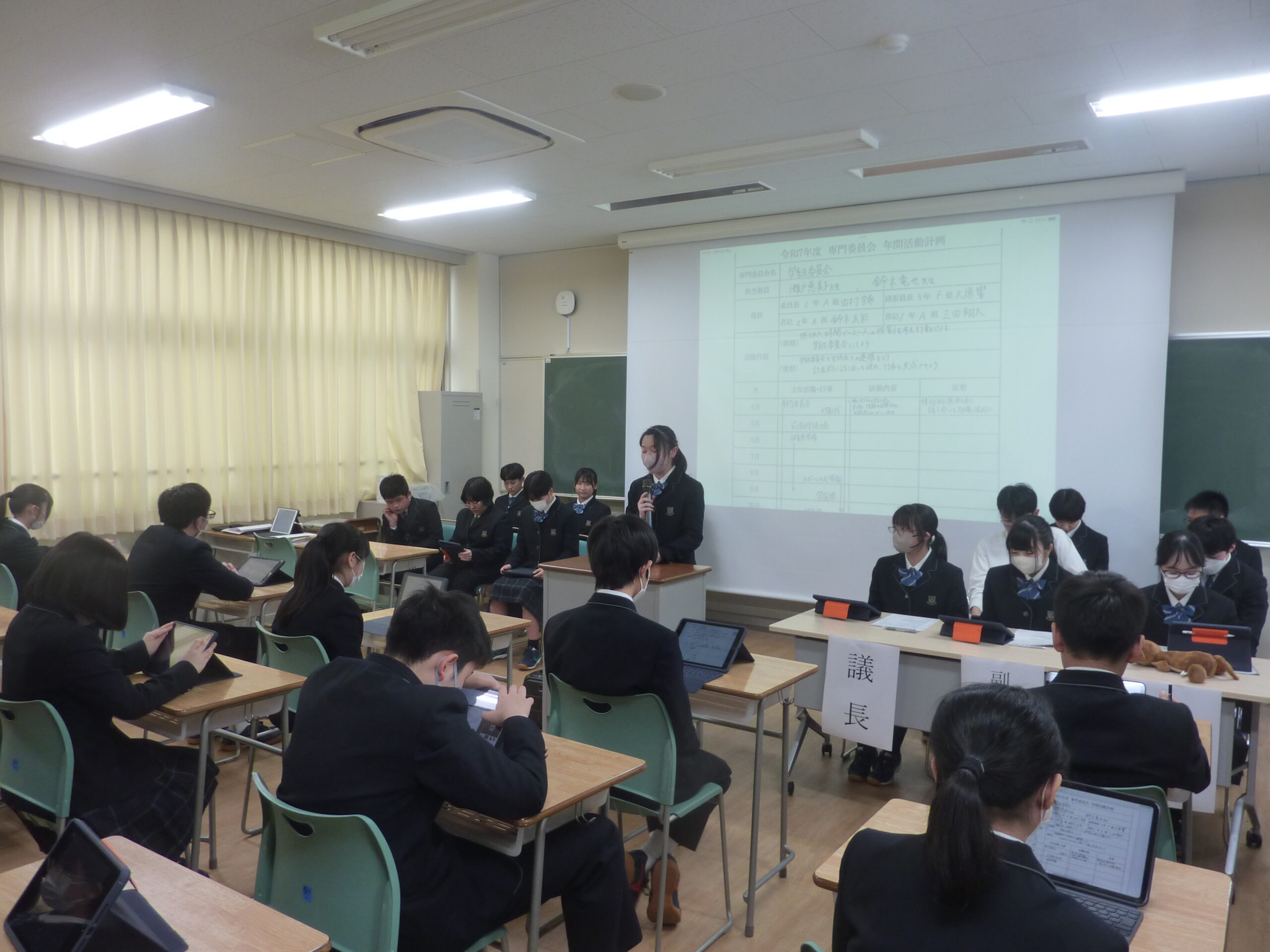 各種専門委員や選択クラブからは、それぞれの活動計画の発表があり、生徒主体の積極的な取り組みが期待されます。