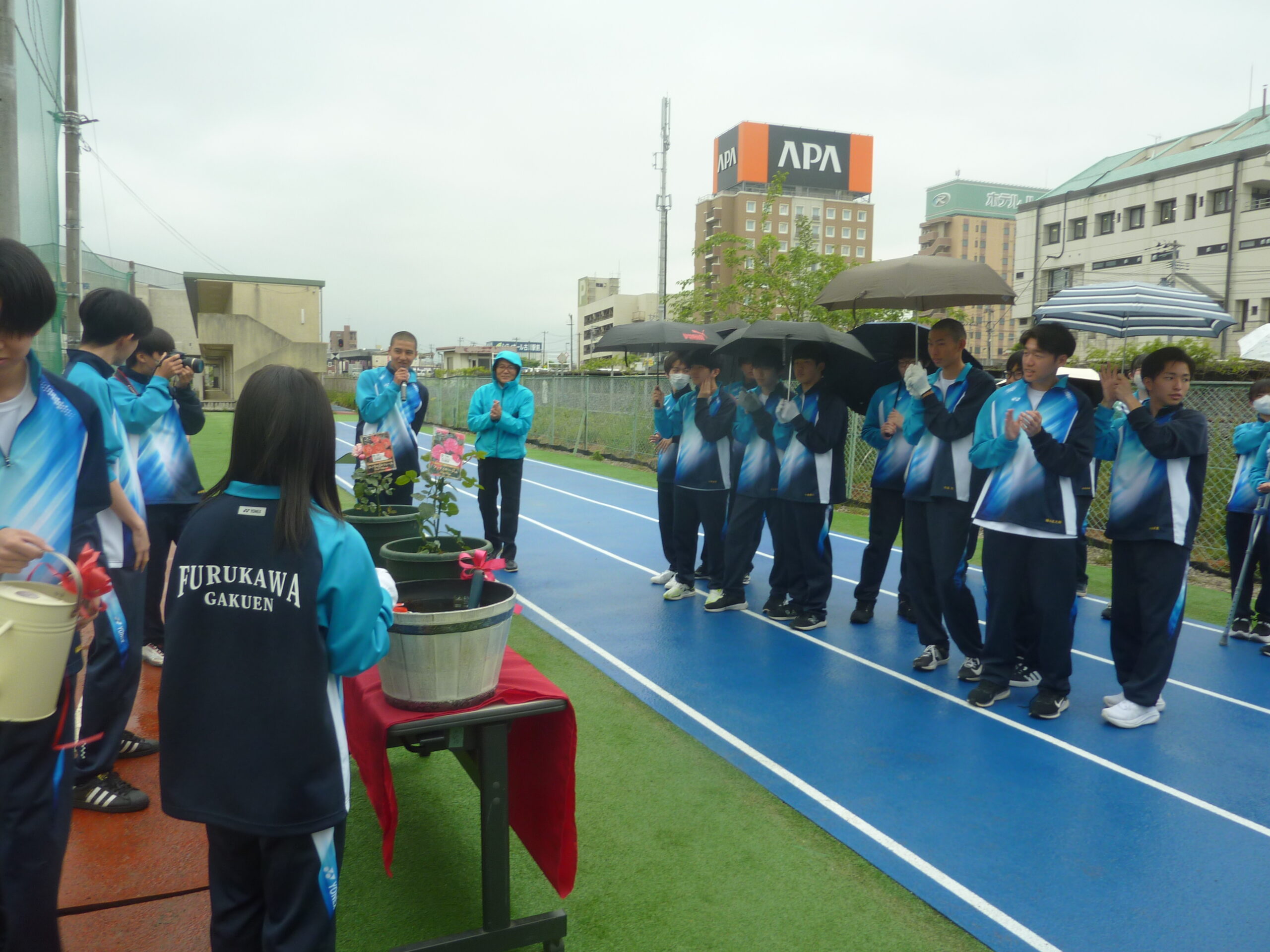 当日は、創志コース1年生29名が参加し、校内の中里校門周辺にて、アジサイ、ジュンベリー、ひまわり、コスモス、バラの苗を植えました。