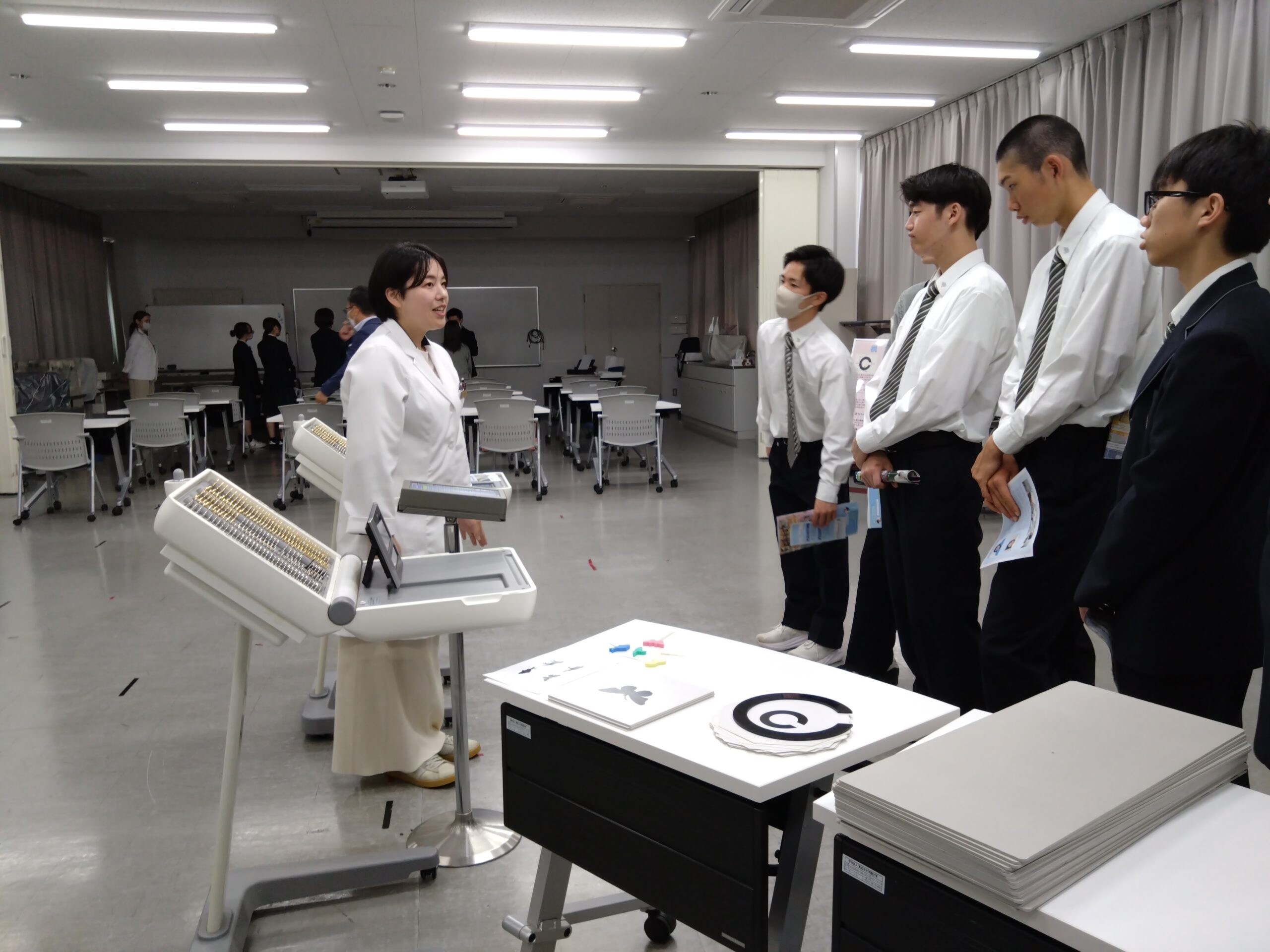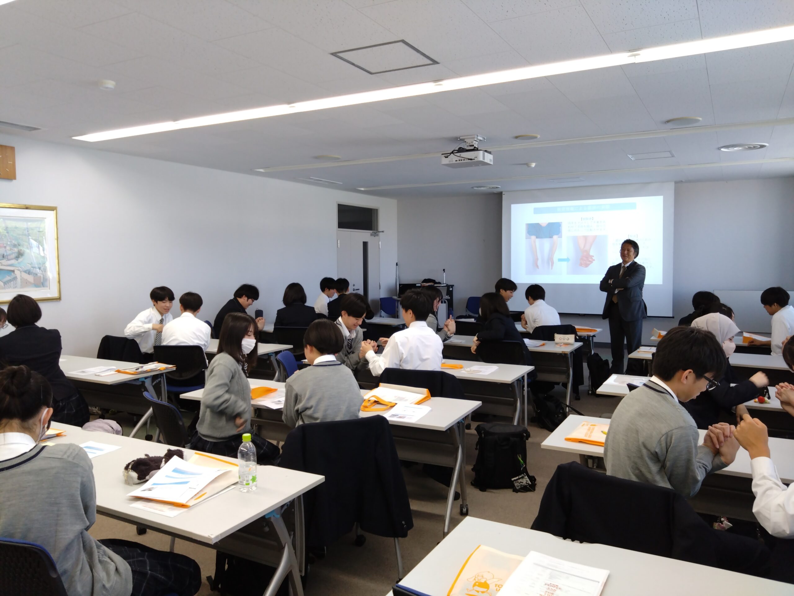 午後の模擬講義では、『医療に関する仕事、チーム医療について』という内容で授業をしていただきました。
