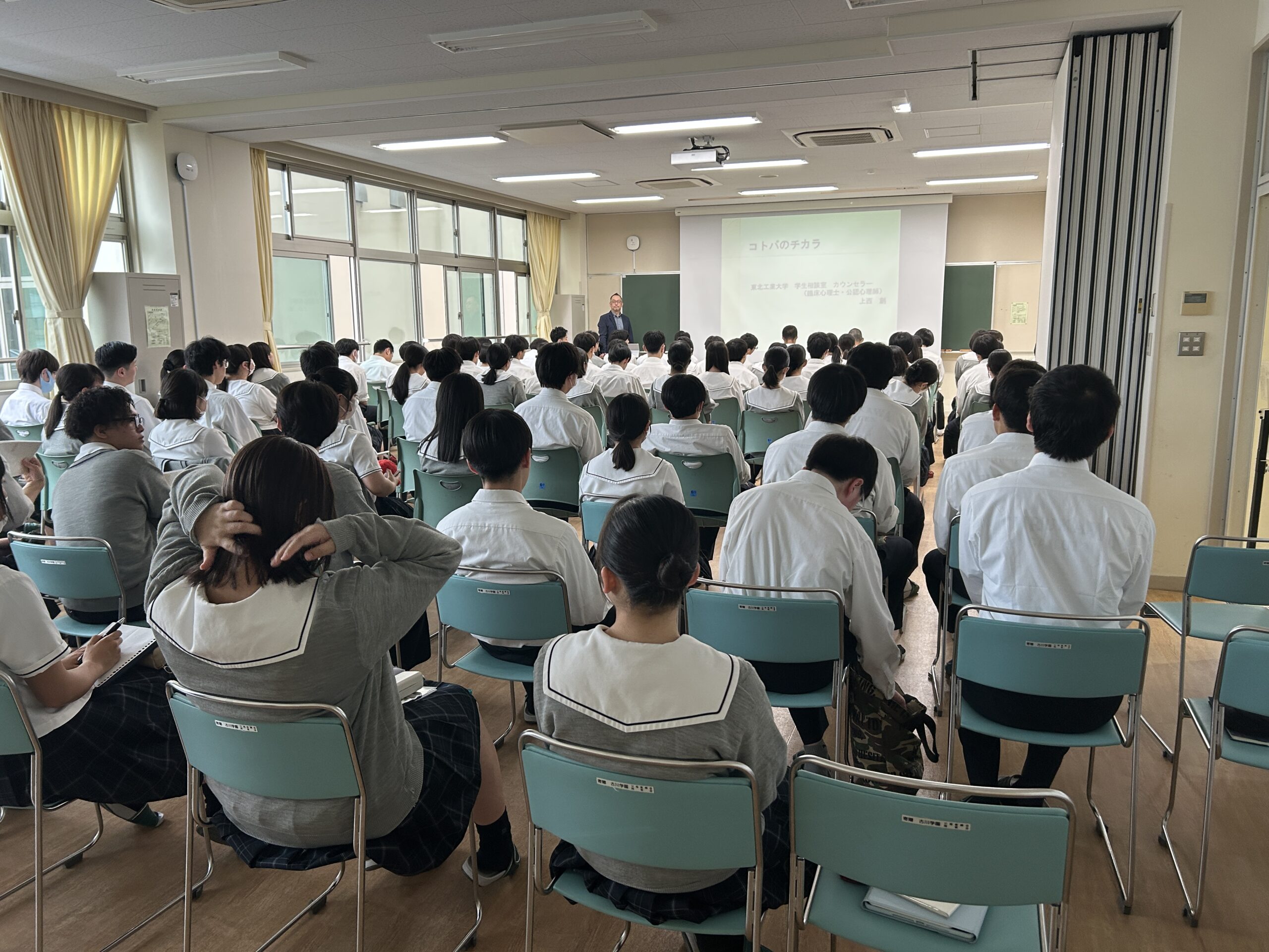 講師は東北工業大学の上西創先生で、「コトバのチカラ」というタイトルで講演していただきました。
