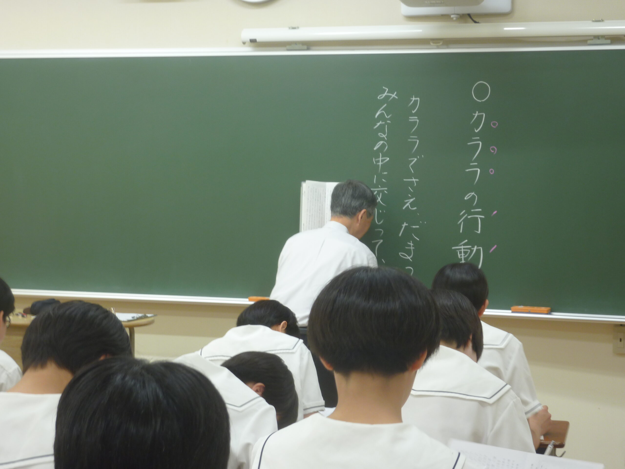 6月17日(火)、本校にて宮城教育大学名誉教授・相澤秀夫先生による中学1年生への道徳の示範授業が行われました。