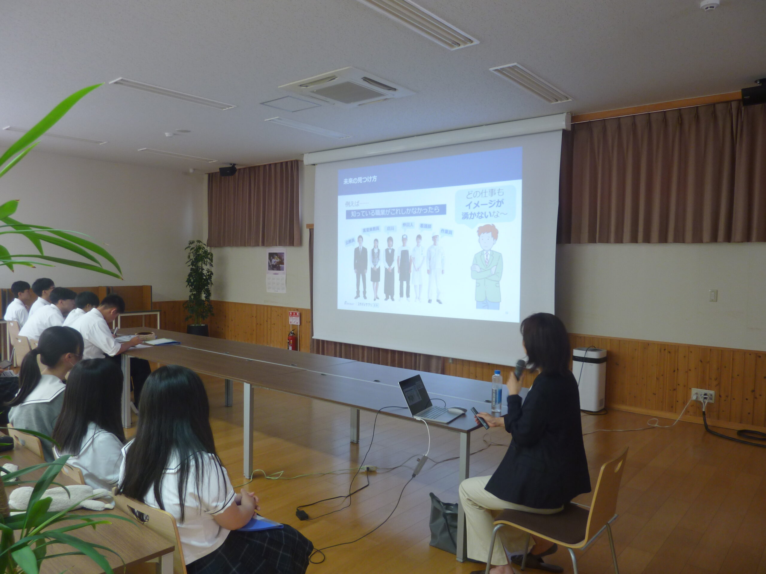 7月9日(水)、情報ビジネス科と総合コースの1年生を対象に職業選択セミナーを実施しました。