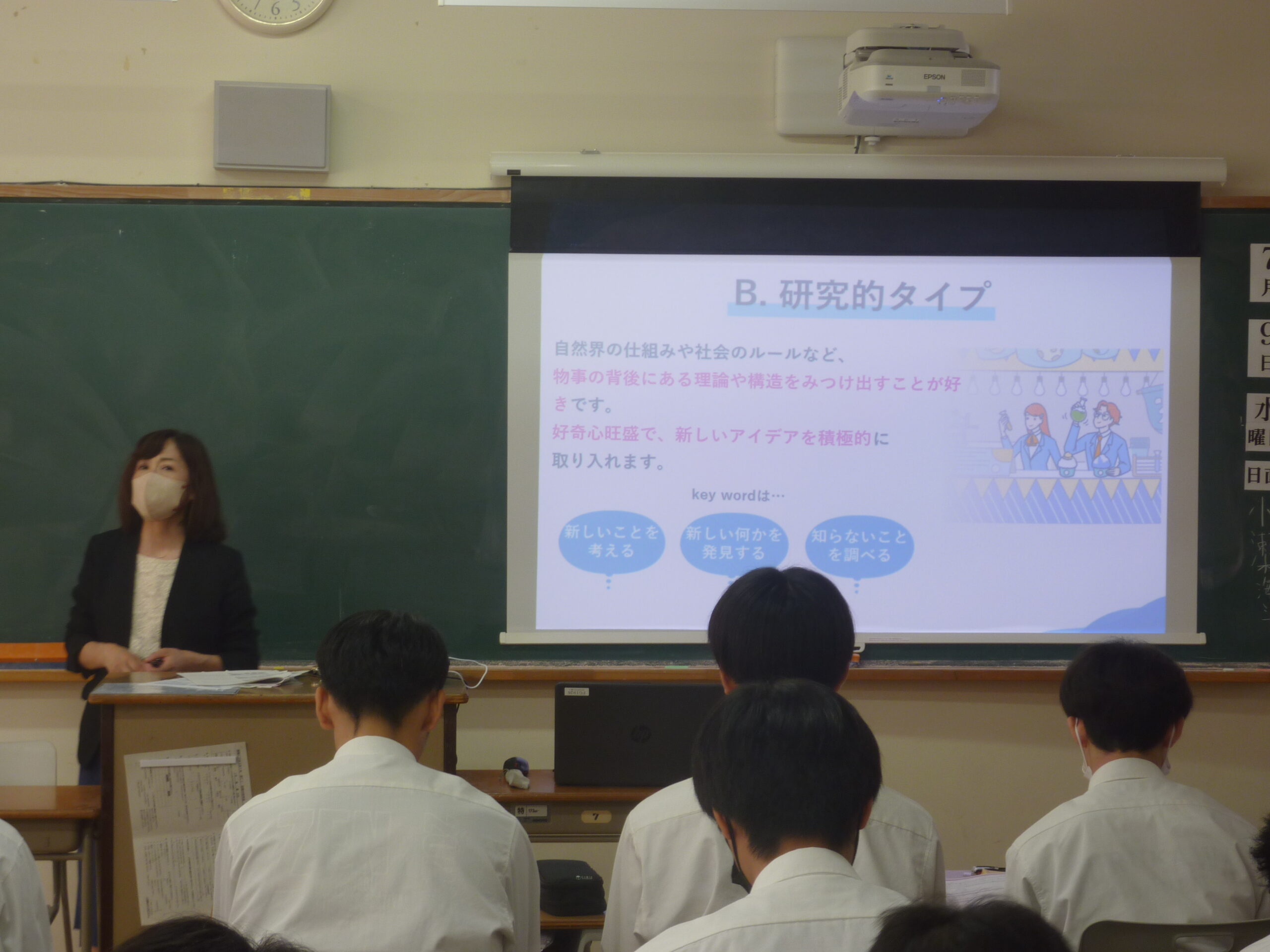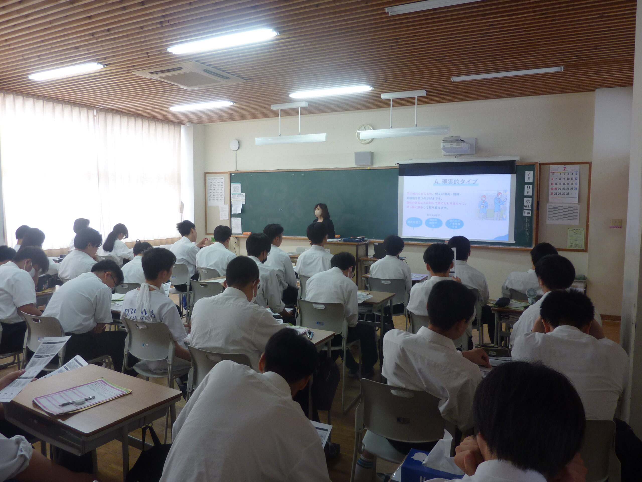 (株)リクルートの講師の方をおよびして、6月に実施した進路適性診断の振り返りを行いました。