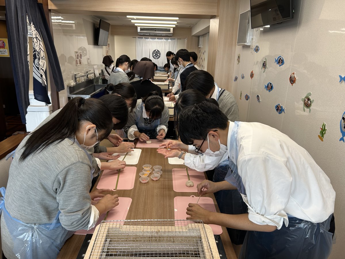職人の方の丁寧な指導のもと、素材の扱い方や焼き加減の大切さを学び、完成した自作のかまぼこを美味しそうに味わっていました。
