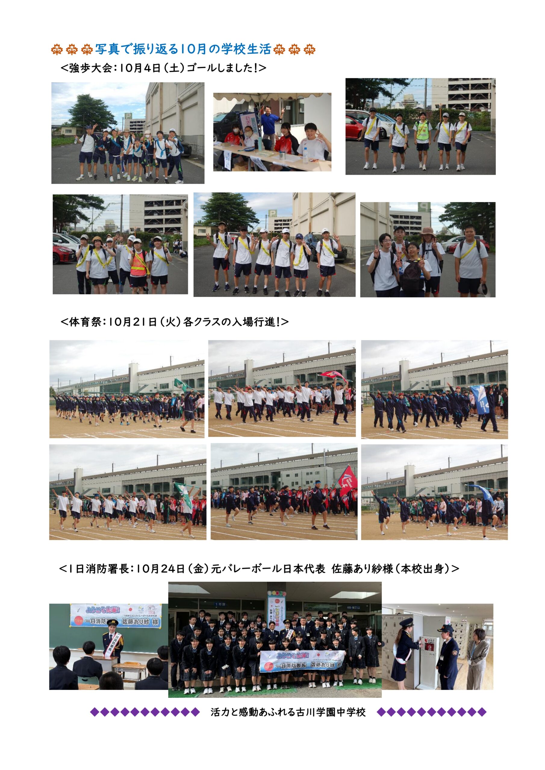 当月の学校行事や、その時の生徒の様子が掲載されています。