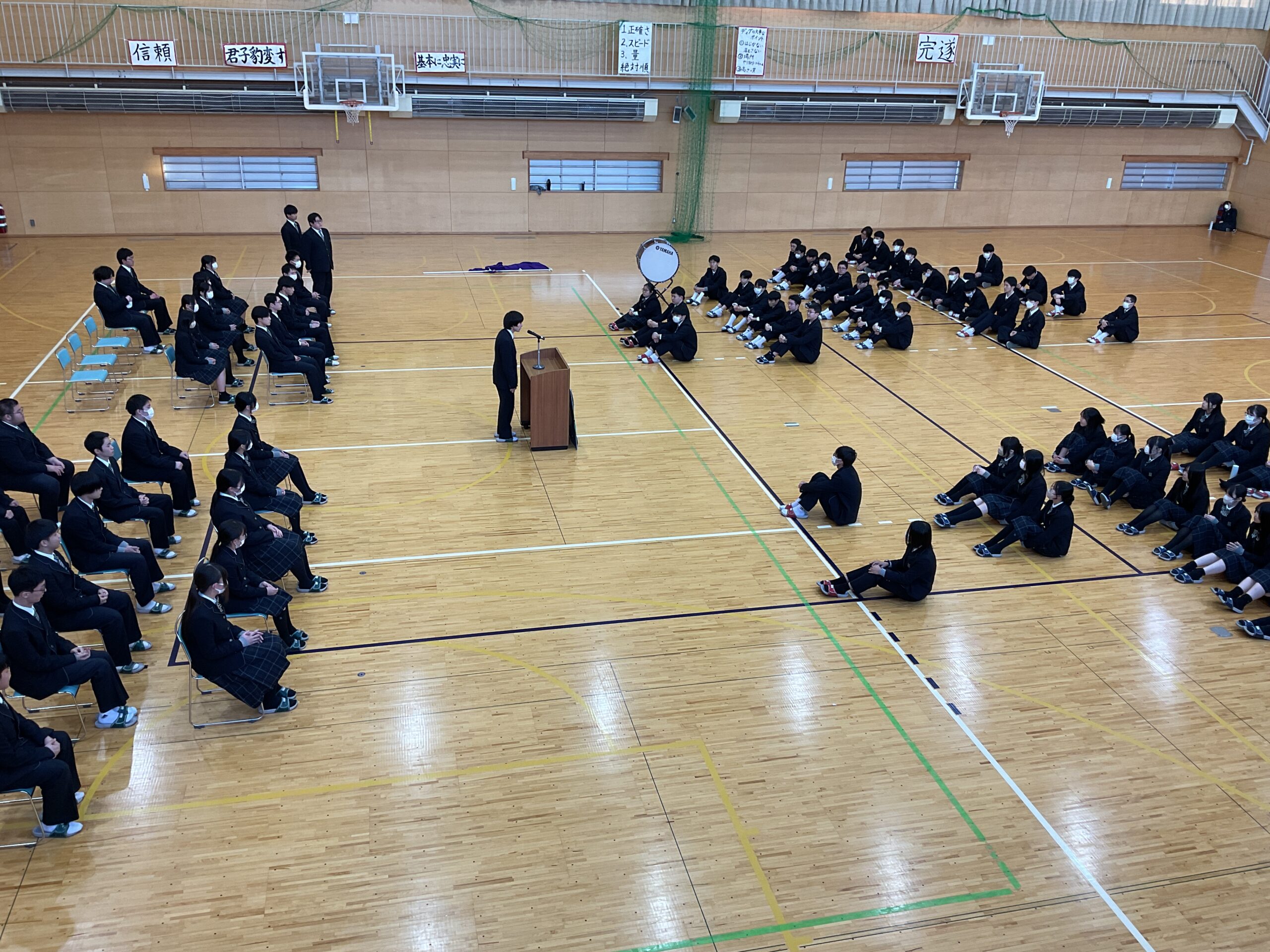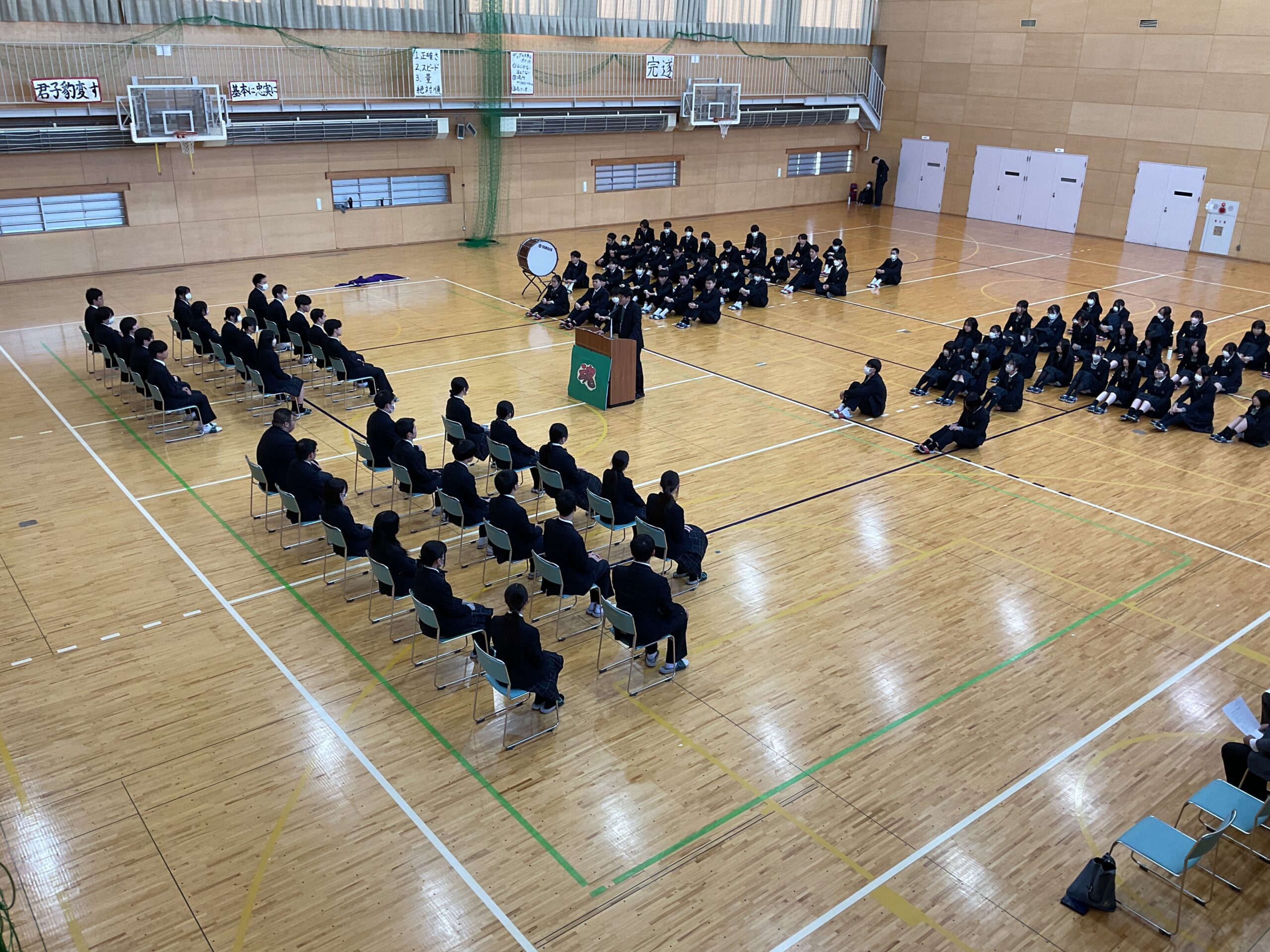 この式は3年生を激励することを目標としていますが、1,2年生も宣誓や様々な挨拶を聞くことによって刺激を受け、自身への波及効果があるように感じられます。