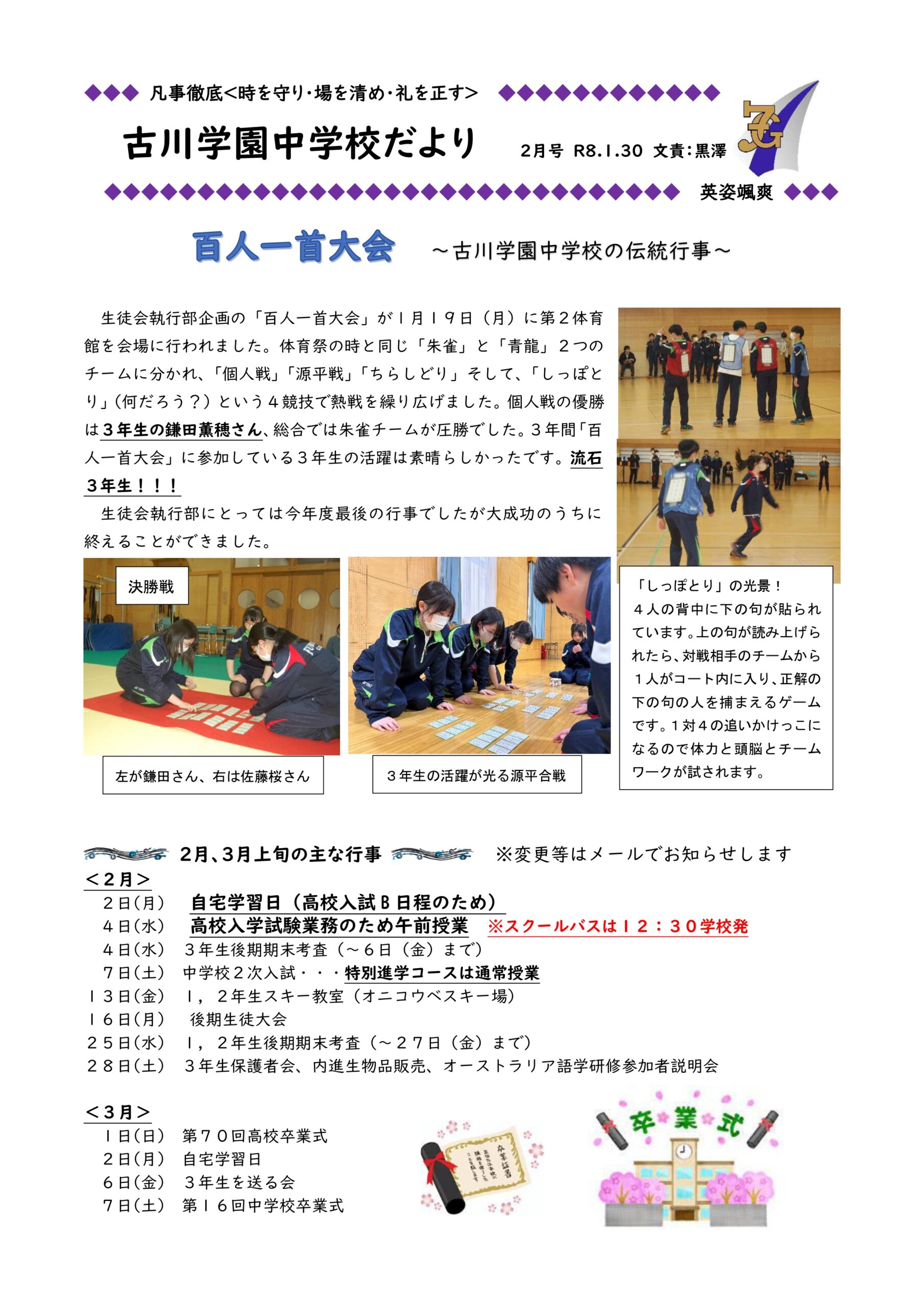 2026.01.15古川学園中学校 入試案内(二次) 公開のお知らせ