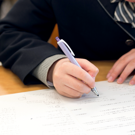 2年生から自分の進路希望や興味関心に合わせた「系列選択授業」が始まります。「文理系列(文系・理系)」「スポーツ系列」「福祉・看護系列」「製菓系列」に分かれ、週に7時間、3年間合計で約500時間にわたって学びを深めます。実習はもちろん、地域交流などの機会が豊富で、他では得られない貴重な学びとなります。