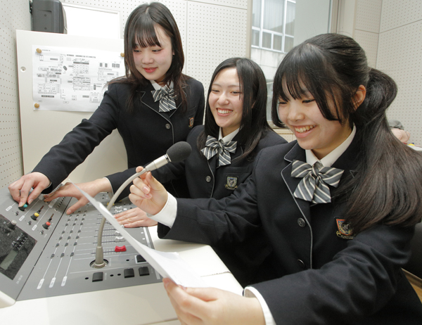 お昼の放送をしています!放課後はNHK杯全国放送コンテスト出場を目指して発声練習や朗読の練習をしています。